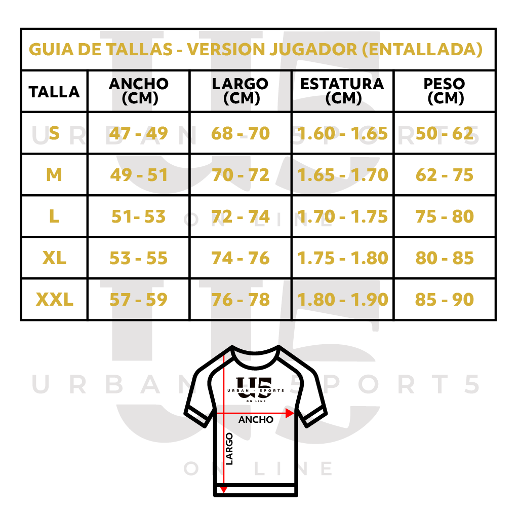 Es la misma camiseta que usan los jugadores en la cancha, con acabados premium y máxima calidad.