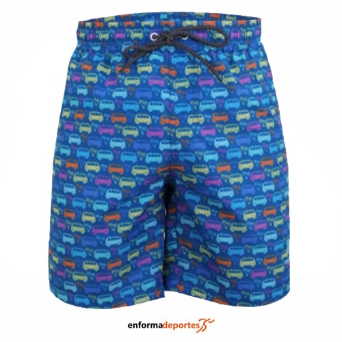 Bañador hombre SPHERE CAMPERVAN, confeccionado en tejido de secado rápido y transpirable, con cintura elástica, cordón regulable, slip de rejilla, bolsillos delanteros rectos, bolsillo trasero insertado con cremallera invertida, logo bordado.