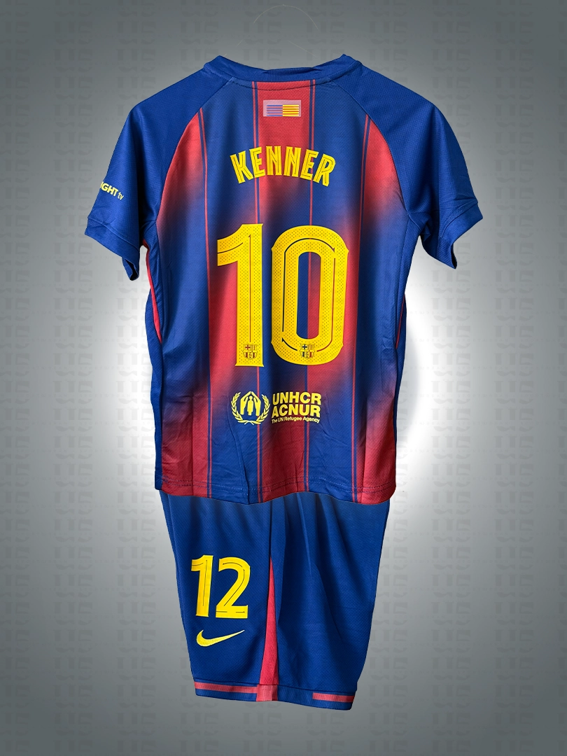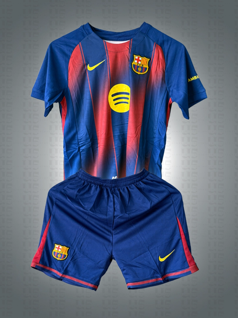 Uniforme Barcelona Niño ideal para entrenamiento ideal para partido. Disponible en tallas 8–16. Si quieres el nombre y número, selecciona la opción de personalización.