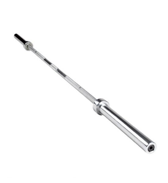 Barra de punto granular que aumenta la fricción y es antideslizante. Incluye collarines de presa para asegurar los discos.
