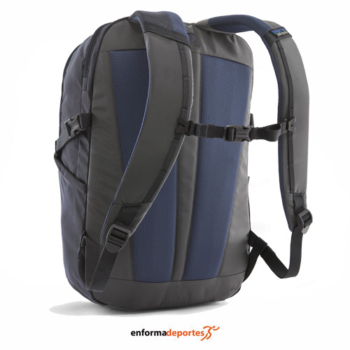 Mochila PATAGONIA ULTRALIGHT BLACK HOLE DUFEL, con capacidad de 26 litros está tratada con un acabado repelente al agua duradero (DWR) elaborado sin químicos perfluorados (PFC/PFAS); todas las telas son 100% recicladas excepto la malla elástica para los bolsillos laterales, que es una mezcla de 72% nailon reciclado/28% spandex, con funda acolchada extraíble se adapta a computadoras portátiles de hasta 15″ y tiene un bolsillo seguro con cierre para guardar bolígrafos, cables y otros elementos de escritorio para facilitar las transiciones del trabajo al juego, con panel trasero transpirable y soporte para la hidratación, con un compartimento principal grande y un bolsillo en el panel frontal ayudan a mantener su día organizado y los artículos que usa con frecuencia a mano, con punto de sujeción para luz de bicicleta en la base de la mochila y de dimensiones: 18″ x 12″ x 6,5″
