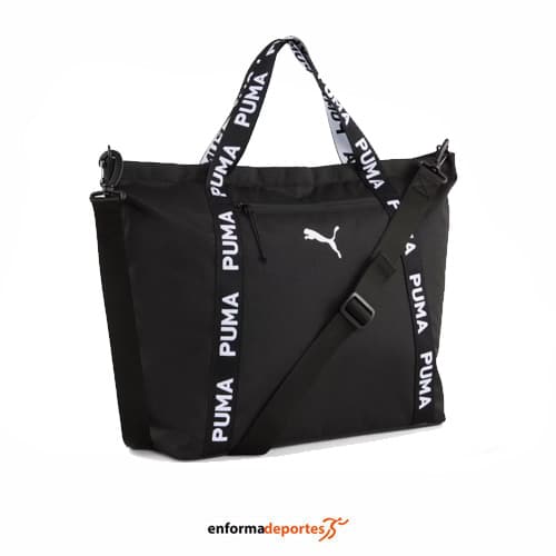 Bolsa shopper PUMA, con capacidad para 19 litros, fabricada en tejido poliéster, cuenta con un compartimento principal con cremallera, un bolsillo delantero y un espacio interior, con correas de jacquard ajustables. Dimensiones: 50 cm (alto) x 35 cm (ancho) x 15 cm (fondo)