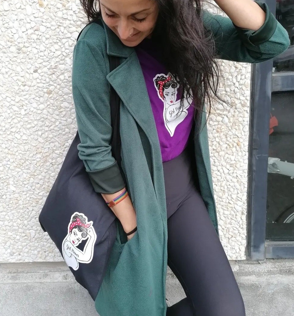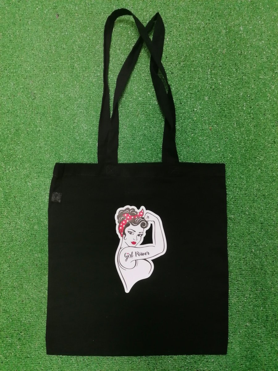 100% de algodón 105 g/m² cosida, con prácticas asas largas reforzadas de 70 cm.