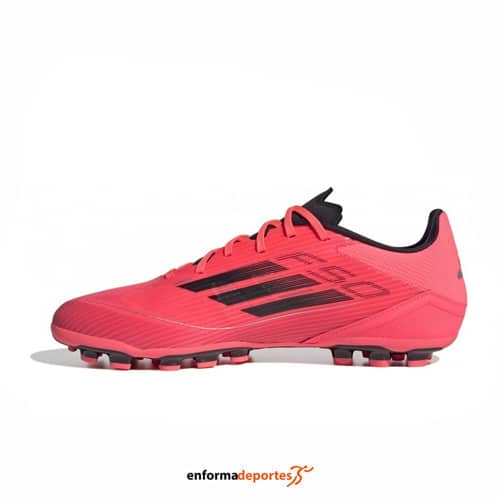 Bota de fútbol ADIDAS F50 LEAGUE 2G/3G AG, fabricada en su parte superior sintética que permite movimientos rápidos y un control preciso del balón, con sistema de cierre con cordones, para un mejor ajuste, fabricada en materiales resistentes que soportan el desgaste en superficies artificiales, forro interior acolchado que proporciona confort y suela AG diseñada para ofrecer un agarre firme en superficies 2G y 3G, proporcionando estabilidad y maniobrabilidad.