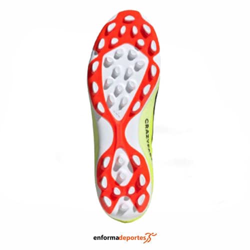 Bota futbol hombre ADIDAS X CREAZYFAST LEAGUE 2G/3G AG, fabricada en material superior duradero y de tacto suave, con acabado con residuos plásticos, cuello de corte bajo con cierre con cordones, para un mayor ajuste, con suela para terreno mixto, suela y tacos optimizados para su uso en terrenos mixtos (cespes artificial, terreno duro y cesped natural), con tacos adicionales del antepié y el diseño de tacos generativos están diseñados para optimizar la tracción y una rápida aceleración, con construcción superior multicapa, capas altamente revestidas con refuerzos solo donde sea necesario, maximizando el bloqueo y el peso ligero.