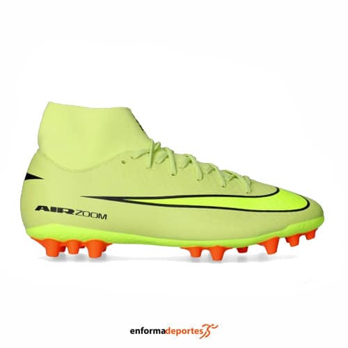 Bota futbol hombre NIKE MERCURIAL SUPERFLY 10 ACADEMY, fabricada en su parte superior de material sintético Nike Skin que ofrece un excelente toque de balón, con calcetín confeccionado con tejido Dynamic Fit que envuelve el tobillo a la perfección, placa de la suela que incorpora la unidad Zoom Air que ofrece una mayor reactividad permitiendo movimientos explosivos y tacos en forma cilíndrica con un agujero en la base que los hacen ideales para su uso en césped artificial.