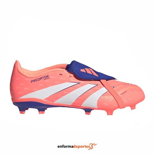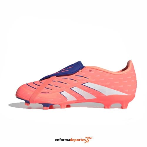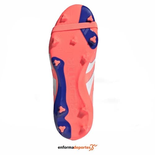 Bota futbol junior ADIDAS PREDATOR LEAGUE FT FG/MG, de horma clásica, con cierre con cordones, con empeine Hybridfeel con elementos Strikescale, con forro textil interior, lengüeta plegable y suela Controlplate multisuperficie.