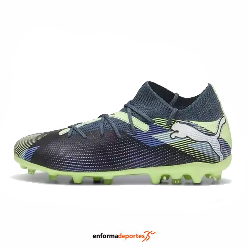 Bota de Fútbol junior PUMA FUTURE 7 MATCH MG, con un diseño moderno y tecnología avanzada, ofrecen una combinación perfecta de estilo y rendimiento, de peso ligero que facilita movimientos rápidos y ágiles en el campo, con cierre con cordones para un ajuste seguro y personalizado y suela Multi-Ground (MG) diseñada para un agarre excelente en múltiples superficies, ideal para terrenos duros y césped artificial.