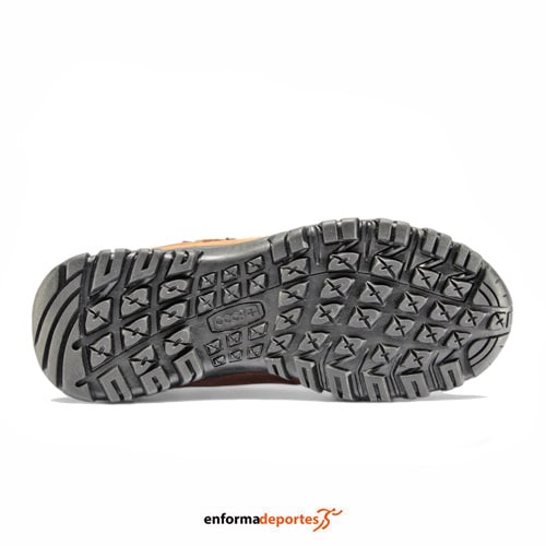 Bota hombre +8000 TALAN, ideal para la práctica de trekking de perfil medio, fabricada en su parte superior de nobuck, con membrana Waterproof que nos garantiza la impermeabilidad y la transpirabilidad y con tratamiento spray repelente al agua, que nos proporciona una protección adicional temporal, suela con tacos y estrías en diferentes direcciones, la hace idónea para las prácticas mencionadas, garantiza buena amortiguación gracias a su mediasuela de phylon y la plantilla termoformada SIS.