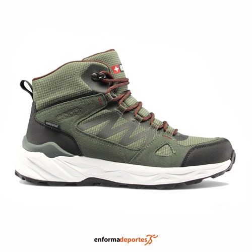 Bota técnica hombre +8000 TRAZEN, fabricada con membrana Waterproof, protección y resistencia media al agua, ajuste y confort para cada paso, con parte superior en nylon proporciona una transpirabilidad óptima, manteniendo el pie seco y fresco. La media suela de phylon aporta una amortiguación suave y una excelente reactividad, reduciendo el impacto en cada zancada. Además, la puntera reforzada de goma añade un extra de seguridad en la zona delantera frente a golpes o roces.