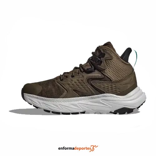 Bota hombre HOKA ANACAPA 2 MID GTX, fabricada en su parte exterior de piel impermeable de nobuck, con sistema Gore-Tex Insivible Fit, proporciona más ventilación, siendo más ligero y transpirable, con entresuela ligera de EVA de caña de azúcar amortigua y equilibra la pisada, mientras que la puntera resistente a la abrasión aporta protección adicional y suela Vibram® Megagrip ofrece una tracción sólida en diferentes superficies, para que tengas estabilidad incluso en las rutas más largas