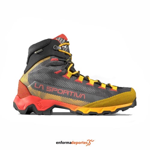 Bota hombre LA SPORTIVA AEQUILIBRIUM HIKE GTX, de media caña ágil y ligera, fabricada en tejido sintético garantiza ligereza y transpirabilidad, con membrana Goretex Extended Comfort 100% impermeable, también gracias al ribete resistente a la abrasión y repelente al agua en las zonas más expuestas . El 3D Flex System Evo™ asegura una flexibilidad y movilidad natural en la zona del tobillo, garantizando agarre y seguridad en cualquier tipo de terreno, con mediasuela Espuma de poliuretano con película de TPU antiabrasión y suela Vibram®.