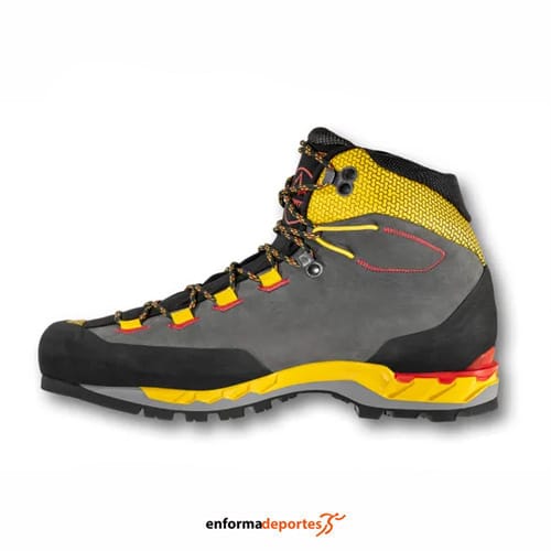 Bota hombre LA SPORTIVA TRANGO TECH LEATHER GTX, confeccionada en su parte supeior de tejido anti abrasión con tecnología de inyección Thermo Tech, material termoplástico inyectado para minimizar las costuras y mantener el peso al mínimo, con membrana impermeable Gore-Tex, ayuda a mantener los pies secos a la par que mantiene la transpirabilidad, con lengüeta integrada en la parte superior en tejido elástico suave y la forma ergonómica proporciona un ajuste envolvente, la entre suela anti-sock de poliuretano de baja densidad reduce el impacto con el suelo durante la marcha, con articulación 3D Flex System facilita la movilidad del tobillo para obtener un apoyo preciso en terrenos irregulares y suela La Sportiva Cube de Vibram favorece el apoyo en cualquier tipo de terreno.