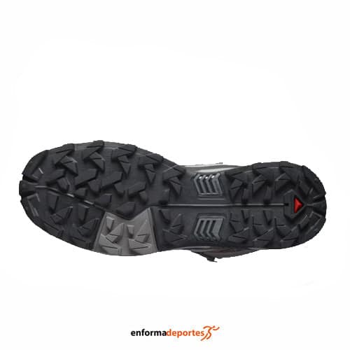 Bota hombre SALOMON X ULTRA 5 MID GTX,  fabricadas con  una pala de Matryx ultraduradera y con construccion SensiFit, con membrana GORE-TEX que proporciona transpirabilidad y protección frente a humedad, con forro interior de OrthoLite moldeada, entresuela EnergyCell que garantiza una amortiguación moderada, con una duradera suela Contagrip para mayor agarre y tracción, cierre con cordones para un mayor ajuste y drop 11mm.