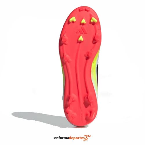 Bota de futbool junior ADIDAS F50 LEAGUE, de horma clásica, con empeine Fiberskin con estampado Sprintgrid, con lengüeta perforada, cierre con cordones y suela Sprintplate 360 para césped natural seco/multisuperficie.
