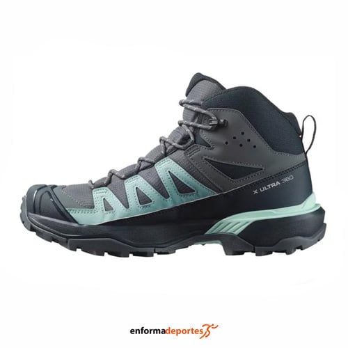 Bota mujer SALOMON X ULTRA 360 MID GTX, fabricada en su parte exterior material sintético, con cierre con tecnología Quicklace, impermeable gracias a tecnología Gore-Tex, con media suela EnergyCell, amortiguación y comodidad, de altura media, para mayor protección en el tobillo, suela All Terrain Contagrip que garantiza tracción en cualquier tipo de superficie.