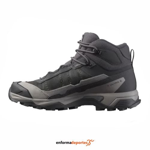 Bota mujer SALOMON X ULTRA 5 MID GTX, fabricadas con una pala de Matryx ultraduradera y con construccion SensiFit, con membrana GORE-TEX que proporciona transpirabilidad y protección frente a humedad, con forro interior de OrthoLite moldeada, entresuela EnergyCell que garantiza una amortiguación moderada, con una duradera suela Contagrip para mayor agarre y tracción, cierre con cordones para un mayor ajuste.