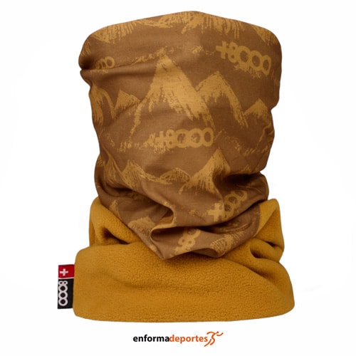 Buff +8000 8BF2405, cuello doble que combina una parte de punto tubular estampado con otra de tejido polar en un lateral, elástico y transpirable y sellado.
