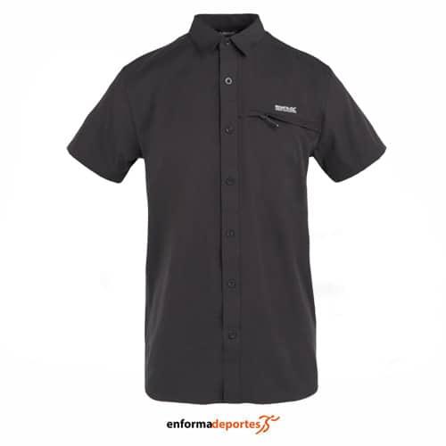 Camisa hombre REGATTA TRAV PACK AWYSS, confeccionada en tejido con tecnología ISOFLEX, tejido elástico activo, poliéster, con acabado hidrófugo duradero, de secado rápido para un mayor confort, ligero, con malla de ventilacion en parte trasera, bolsillo de pecho con cremallera, con protección UV (UPF) y empaquetable en su propio bolsillo.