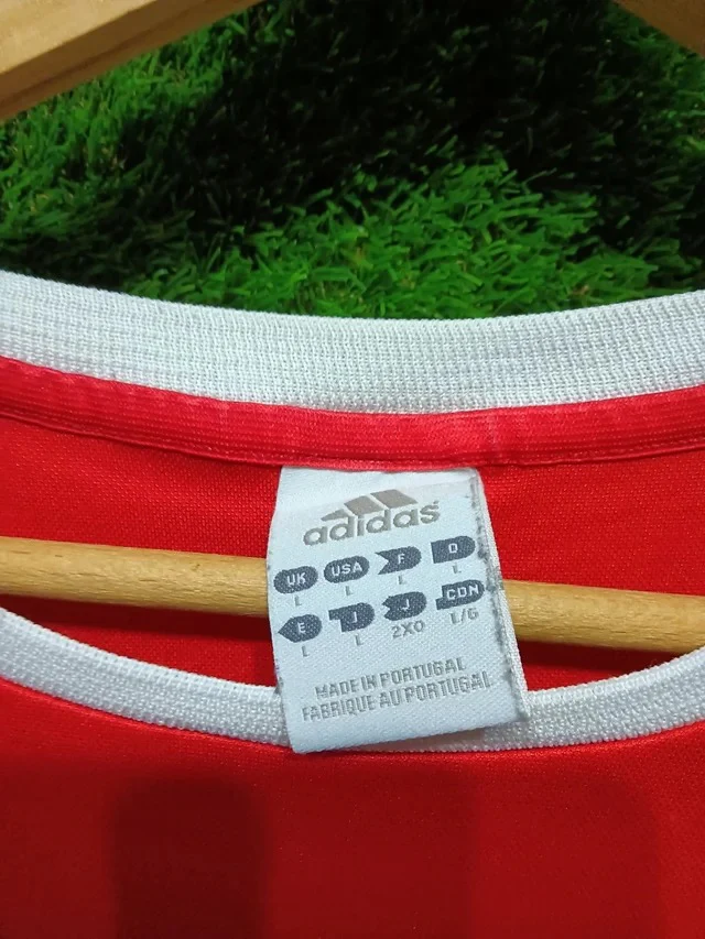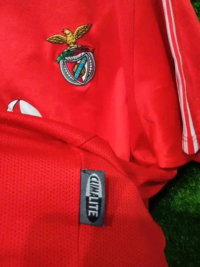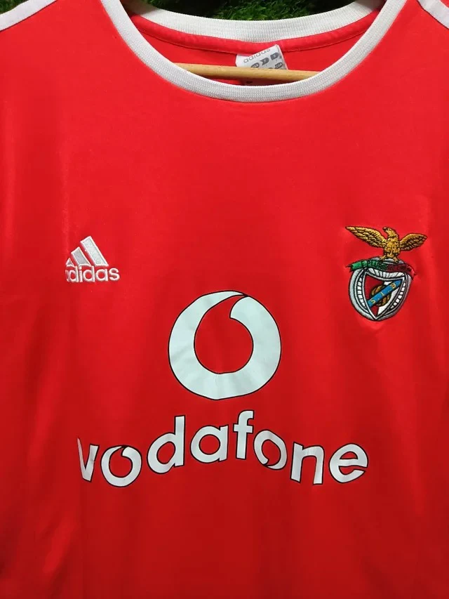 La camiseta de la primera equipación del Benfica para la temporada 2003-04 en talla L está en excelente estado. Confeccionada en el distintivo color rojo del club, presenta el escudo bordado en el pecho izquierdo y el logo del fabricante en el lado derecho. Ligera, transpirable y con costuras reforzadas, esta camiseta fusiona la historia del Benfica con un diseño moderno, ideal para lucir el orgullo por el equipo en cualquier ocasión.