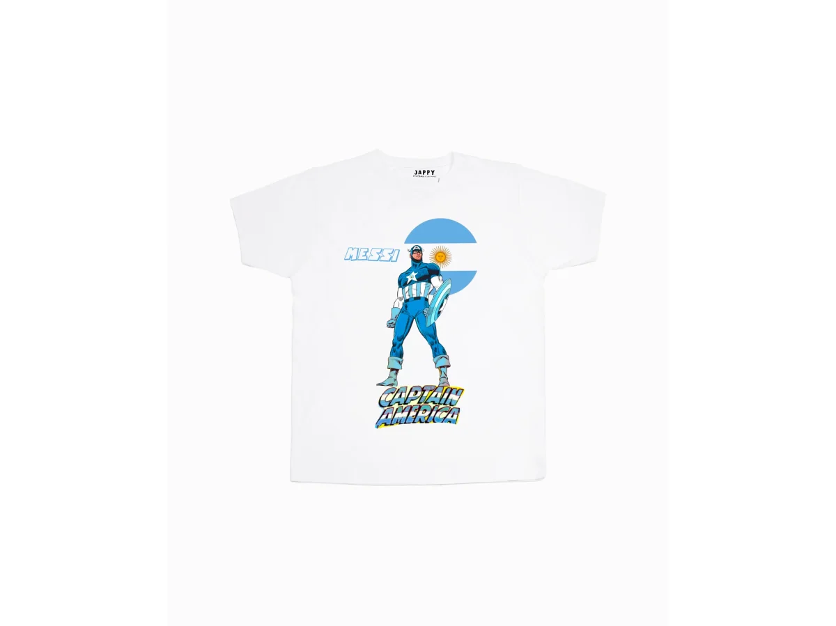 Camiseta de algodón 100% con diseño exclusivo de Jappy Football en homenaje a los súper héroes de las selecciones americanas llamados a capitanear a sus naciones hasta el triunfo de la Copa América.
