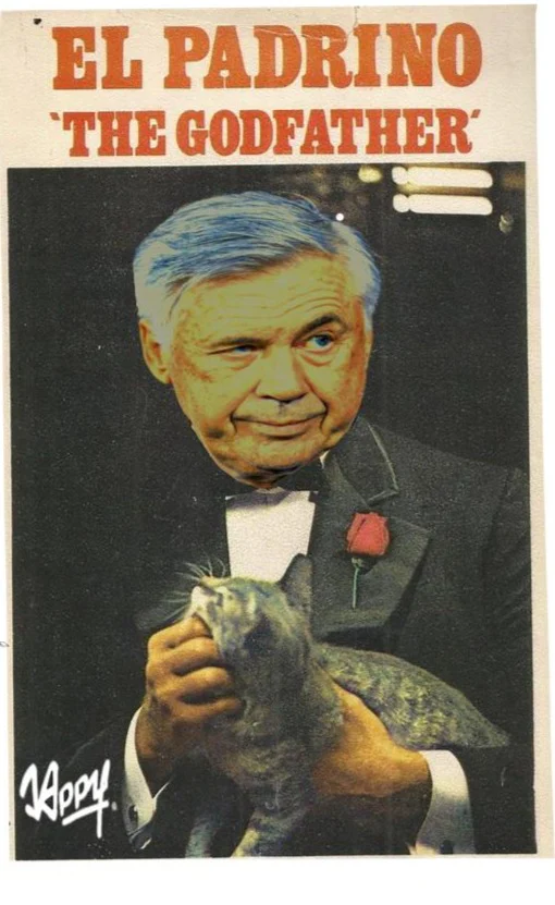 Camiseta de algodón 100% con diseño en homenaje al entrenador de moda al convertirse en el primer entrenador en ganar las cinco grandes ligas europeas, Carlo el Padrino. Todos nuestros artículos se fabrican en Europa con altos controles de calidad y cuidado, utilizando sólo telas exclusivas para recrear las prendas retro de los jugadores más icónicos de la historia del fútbol y poder ofrecer productos con un 100% de nostalgia y un 100% calidad. Todos los artículos de Jappy Football se empaquetan y envían en cajas de regalo. El envío de este producto puede demorarse en la entrega entre 3 y 7 días desde que se realiza la compra.