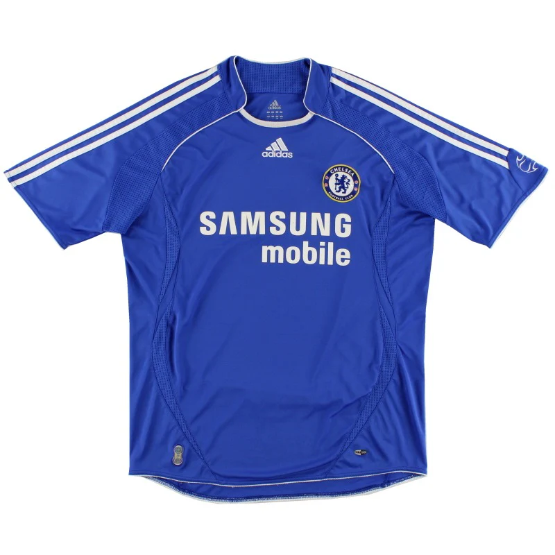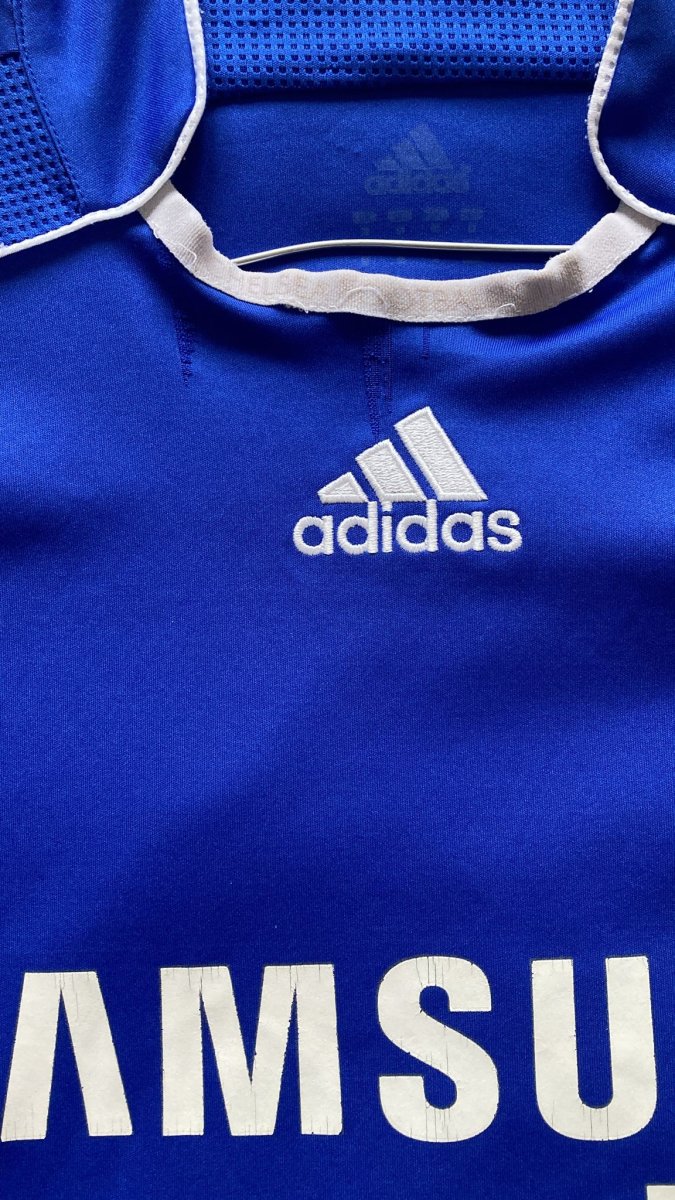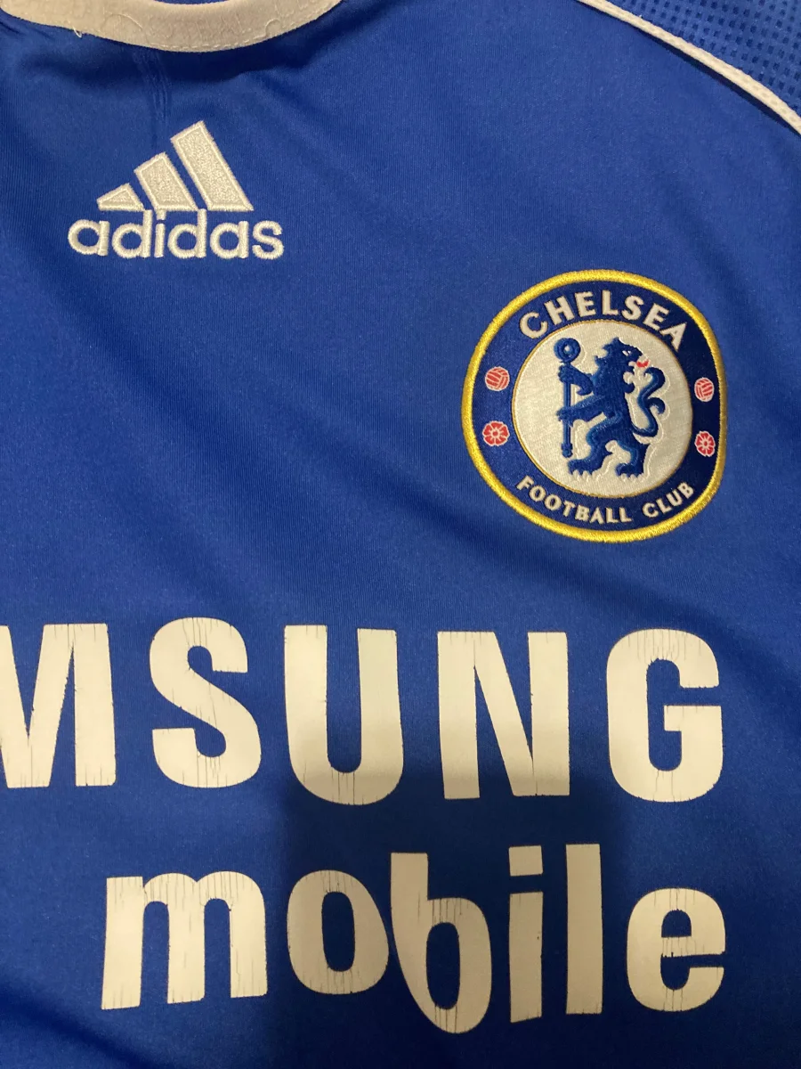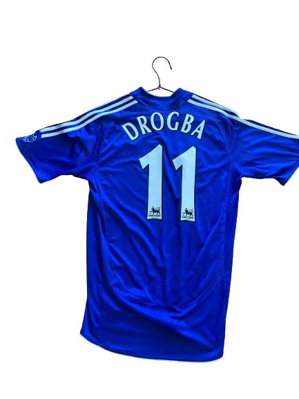Camiseta de la primera equipación del Chelsea de la temporada 2006-08 en talla M y en buen estado pero con algunos signos de desgaste en el cuello por el desgaste y el paso del tiempo, visibles en las fotos y rebaja por error en la la posición de la serigrafía de la camiseta ( ligeramente subido, como se aprecia en las fotos). Camiseta en talla M con dorsal 11 con el nombre de Didier Drogba. Durante las temporadas 2006-2007 y 2007-2008, el Chelsea experimentó un período de éxito en la Premier League bajo la dirección de José Mourinho, Avram Grant y Luiz Felipe Scolari. Terminaron en segundo lugar en la liga en ambas temporadas, mientras que también llegaron a la final de la Liga de Campeones en 2008, aunque fueron derrotados por el Manchester United en los penales. Ganaron la Carabao Cup en 2007 y la FA Cup en 2008, demostrando su capacidad para competir en múltiples frentes. Durante estas temporadas, el Chelsea contó con destacados jugadores, como Frank Lampard o Didier Drogba, quien fue una pieza clave en el éxito del equipo. Didier Drogba fue el ganador de la Bota de Oro de la Premier League en 2006-07, anotando 20 goles. Se convirtió en el primer jugador africano en ser el máximo anotador en una temporada.
