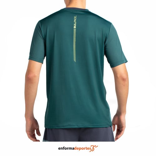 Camiseta hombre BULLPADEL LAGAR, confeccionada en tejido con tecnología Drynamic, para un secado rápido, de construcción técnica y detalles funcionales tejido ligero y elástico, con diseño sublimado, las perforaciones en la espalda y los logos engomados aportan un toque moderno y funcional.