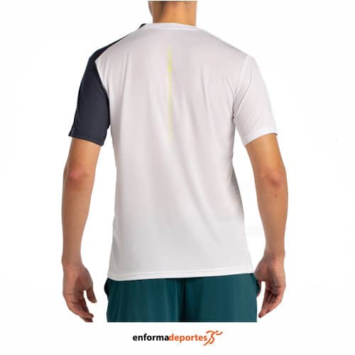 Camiseta hombre BULLPADEL LLICO, de construcción técnica, confeccionada en tejido ligero y elástico que incorpora tecnología Drynamic para un secado rápido, con diseño sublimado, perforaciones en la espalda y logos engomados.