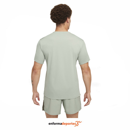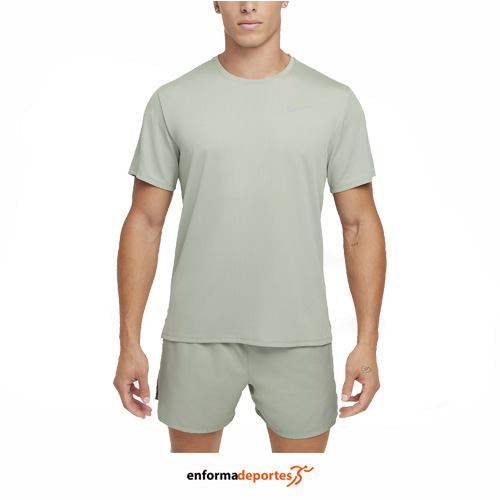 Camiseta hombre NIKE DRI-FIT UV MILER, de corte estándar, cuello redondo y manga corta, confeccionada en tejido 100% poliéster con tecnología DRI-FIT para mantener la transpirabilidad, comodidad, de tacto suave reduce el roce durante las carreras, con costuras de los hombros están desplazadas hacia atrás para que los brazos se muevan libremente, dobladillo curvo amplía la protección en la parte posterior, al tiempo que sus aberturas favorecen la libertad de movimiento y elementos reflectantes.