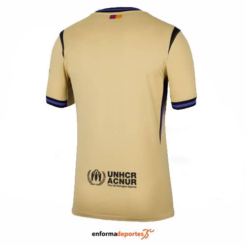 Camiseta hombre NIKE FC BARCELONA 2025/2026 STADIUM AWAY, confeccionada en tejido poliéster con tecnología Nike Dri-FIT aleja el sudor de la piel para mantener la transpirabilidad y la comodidad, diseño tipo réplica inspirado en las míticas camisetas doradas del FC Barcelona y escudo estampado por transferencia térmica.