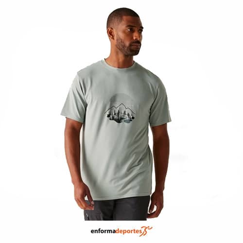 Camiseta hombre REGATTA FINGAL STRETCH, confeccionada en tejido jersey elástico suave al tacto, 95 % poliéster/5 % elastano reciclado, de 130 g/m², con buen rendimiento de absorción del sudor, secado rápido, protección UV (UPF), manga corta y cuello redondo.