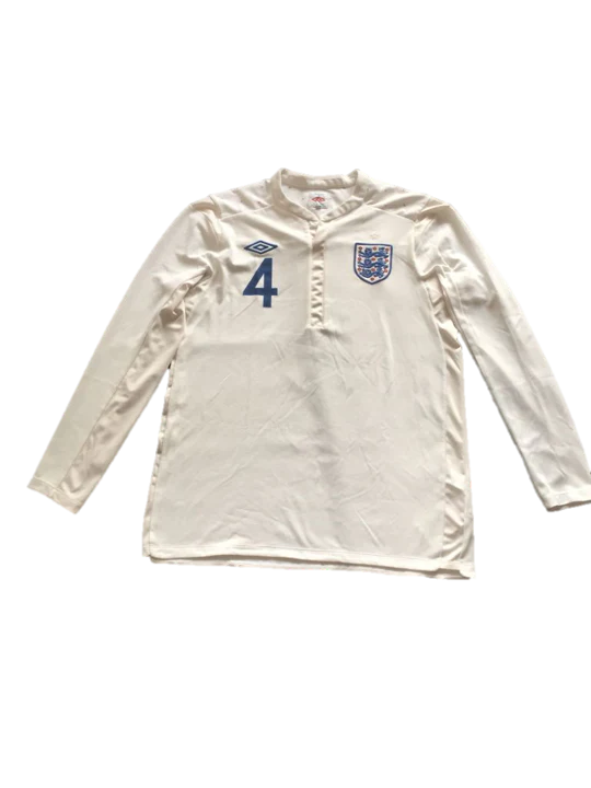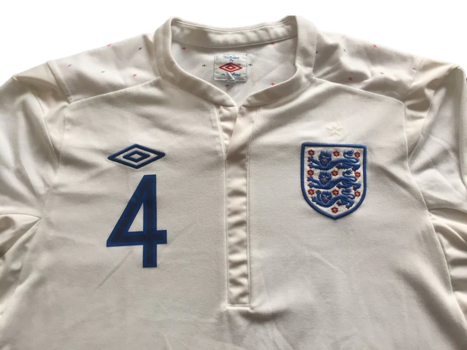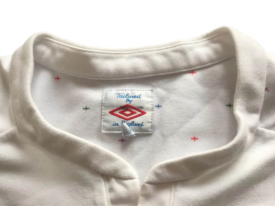 Preciosa camiseta Umbro de manga larga de la primera primera equipación de la selección inglesa en talla 42 ( entre una M y una L), en buen estado, con la que los británicos disputaron la Eurocopa del 2012, en edición especial con estrellas de colores en los hombros. En este torneo, los ingleses, liderados por Seven Gerrard y Wayne Rooney, alcanzaron los cuartos de final empatando a cero frente a la Italia de Andrea Pirlo y de Gigi Buffon, y cayendo en la tanda de penaltis