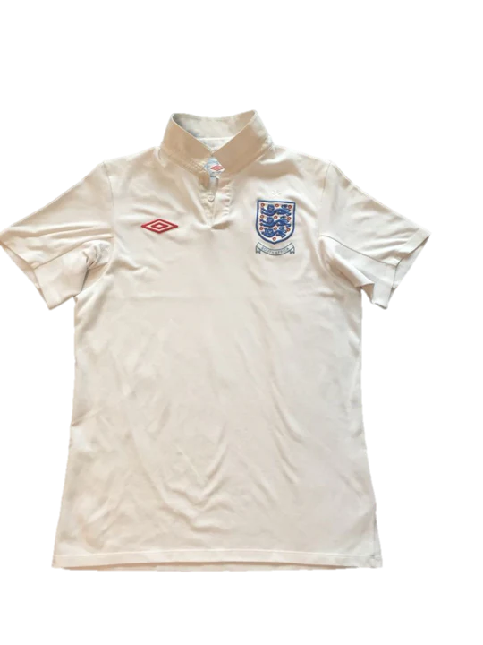 Camiseta de la primera equipación de la selección inglesa en talla 36 como una S – M) y buen estado con pequeños signos de uso de una prenda vintage. En el mundial del 2010 el combinado británico contaba con un gran plantel de jugadores como Frank Lampard, Steven Gerard, Jermain Defoe y Wayne Rooney, bajo la dirección técnica del entrenador italiano Fabio Capello. En los octavos de final del campeonato, Inglaterra perdió frente a Alemania por 4 goles a 1