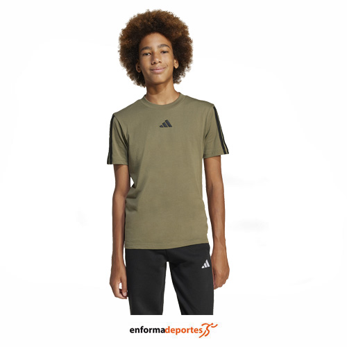 Camiseta junior ADIDAS, confeccionada en tejido 100% algodón, que proporciona suavidad y transpirabilidad para mantenerte cómodo durante todo el día, con tecnología Climalite®, sistema de absorción de humedad que mantiene la piel seca y fresca, ideal para entrenamientos intensos, de corte regular para un ajuste cómodo y versátil.
