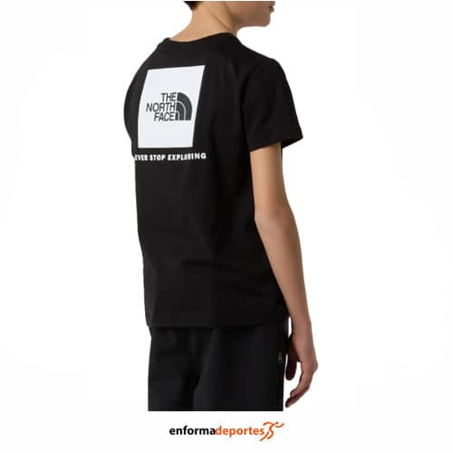 Camiseta junior THE NORTH FACE BOX NSE REGULAR SS, confeccionada en teijdo de polialgodón ligero con corte regular y cuello redondo, manga corta, con logotipo de North Face en la parte delantera y trasera.