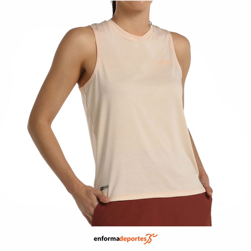 Camiseta mujer +8000 ALMEN, de tirantes, confeccionada en tejido de 100% poliéster rayado con acabado Quicker Dry, con cuello ligeramente en V, corte decorativo en la espalda y logo en el pecho, con acabado Drynamic, tejido con microfilamentos de poliéster, que ayudan a evaporar la humedad.
