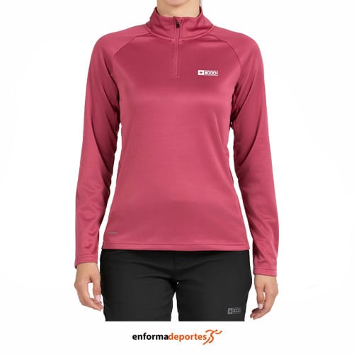 Camiseta mujer +8000 LUA, primera capa que proporciona calidez y libertad de movimiento, confeccionada en tejido en doble cara 100% poliéster con interior perchado acabado con tecnología Quickerdry (secado rápido), de media cremallera, con paneles ergonómicos que garantizan libertad de movimientos, con tapeta interior con acabado para proteger la barbilla.