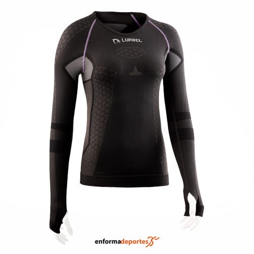 Camiseta mujer LURBEL CRISTALLO 243W, confecconada en tejido con tecnología IDT Neo Recycled, construcción sin costuras en el perímetro proporciona una adaptabilidad superior y una sensación de confort, con costuras planas que evitan la aparición de rozaduras en la piel y garantizan ajuste, incorpora un sistema antideslizante en los codos y aberturas para los dedos pulgares, con protección ultravioleta UPF50+, con capacidad térmica Feel Thermo Tech, con propiedades inodoras y de alta transpiración sustentado por la rejilla Silver Base Layer que garantiza durabilidad y anti-olor.