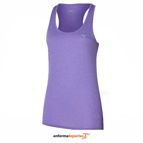 Camiseta mujer MIZUNO IMPULSE CORE TANK, de corte ajustado, confeccionada en tejido 100% poliéster con tecnología DryLite que crea un microclima cómodo y seco para un rendimiento óptimo, con cinta de marca en la nuca, y detalles reflectantes para mayor visibilidad durante las carreras nocturnas.