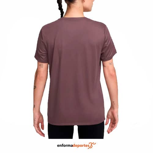 Camiseta mujer NIKE, confeccionada en tejido ligero y transpirable,con tecnología dri-fit, que mantiene alejado el sudor del cuerpo, con cuello redondo de canalé elástico con perfil interno y de ajuste regular.