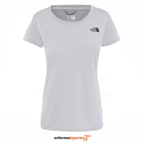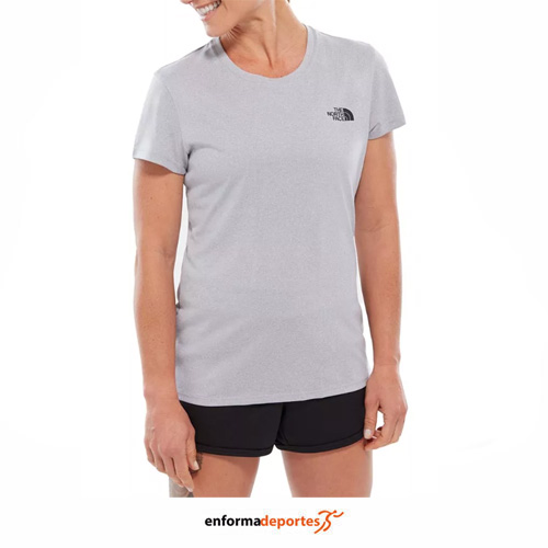 Camiseta mujer THE NORTH FACE REAXION AMP CREW, de corte ajustado, confeccionado en tejido de algodón, con cuello redondo y manga corta.