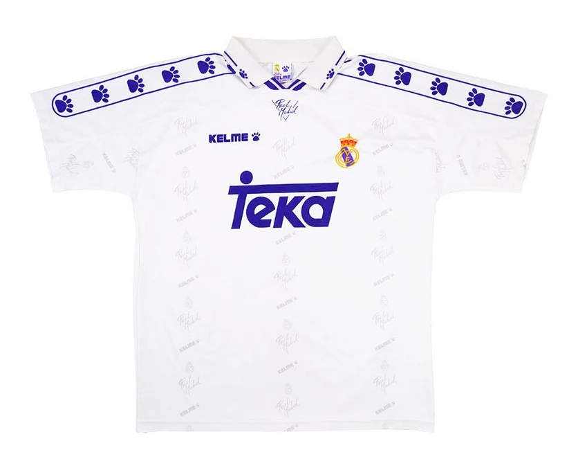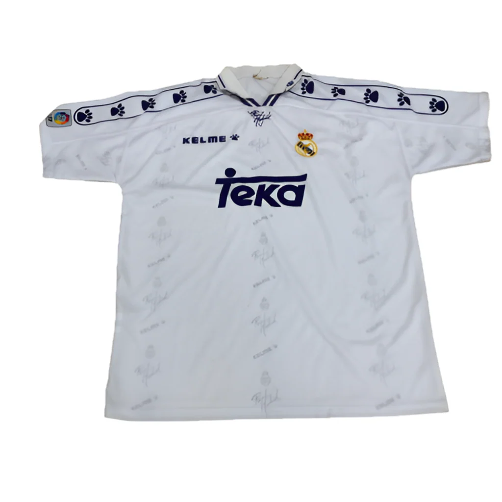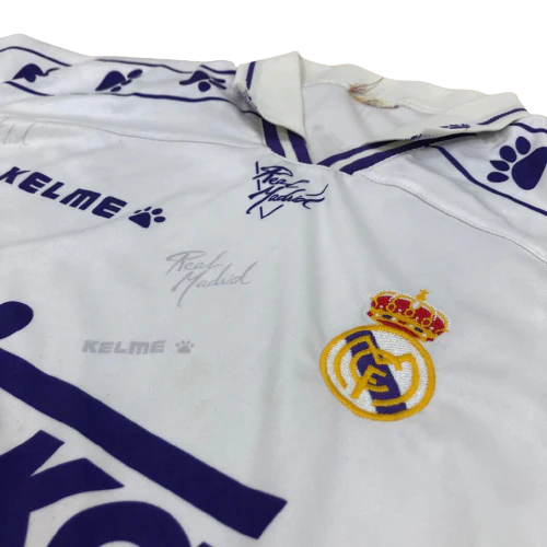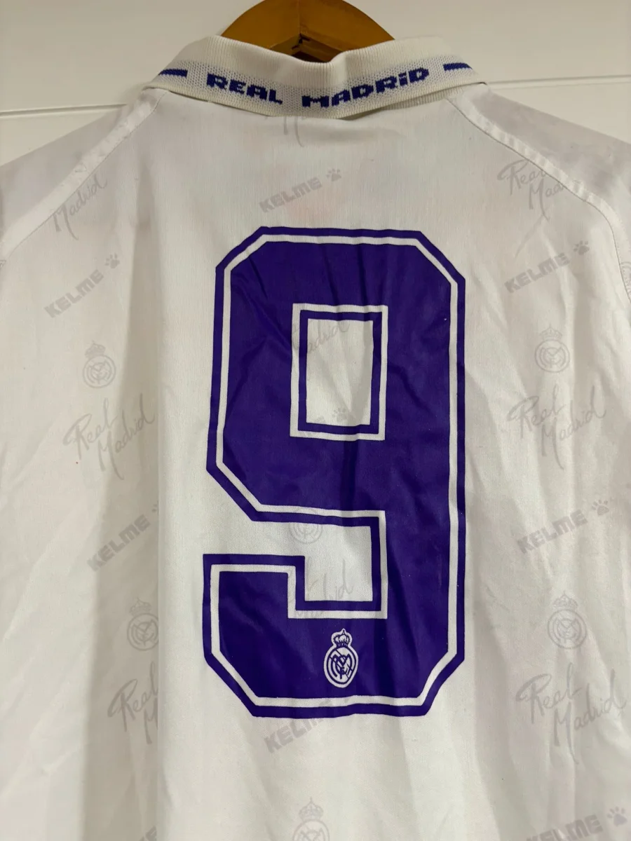 Camiseta Kelme de la primera equipación del Real Madrid de la temporada 1994 a la temporada 96 con el dorsal 9 del mítico rematador chileno, Iván Zamorano.