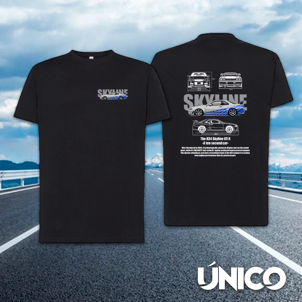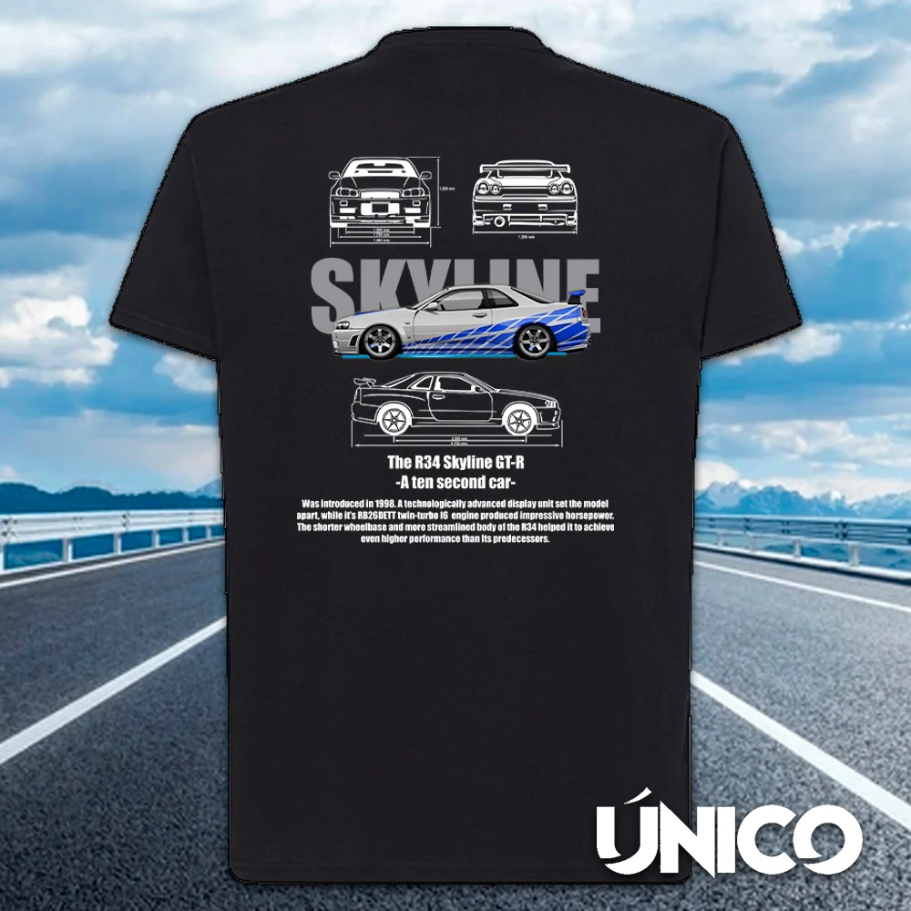 Lleva contigo la esencia de uno de los automóviles más legendarios en la historia del motor: el Nissan Skyline. Esta camiseta está diseñada para los apasionados del JDM y la adrenalina que solo un Skyline puede transmitir. Con un diseño audaz y lleno de detalles, esta prenda es un tributo al rendimiento, la velocidad y el legado que ha dejado este icónico super deportivo japonés.
