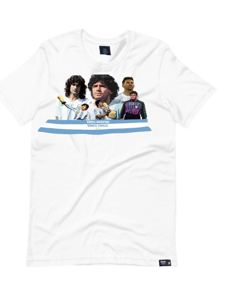 Camiseta de Algodón 100% con diseño exclusivo exclusivo de Jappy Football, de la colección We Love Football en homenaje a las selecciones campeonas del mundial. Sólo hay una cosa capaz de unir a todo el país argentino, una misma pasión, la albiceleste. Cuando argentina juega, no existen los colores ni las camisetas y todo el país alienta a sus jugadores, como lo hicieron con Mario Kempes y Daniel Passarella en el mundial del ´78, o en el ´86 con Diego Armando Maradona o Sergio Goicochea y como lo hacen ahora con Lionel Messi, líder absoluto de la albiceleste. Todos los artículos de Jappy Football se empaquetan y envían en cajas de regalo. El envío de este producto puede demorarse en la entrega entre 3 y 7 días desde que se realiza la compra.