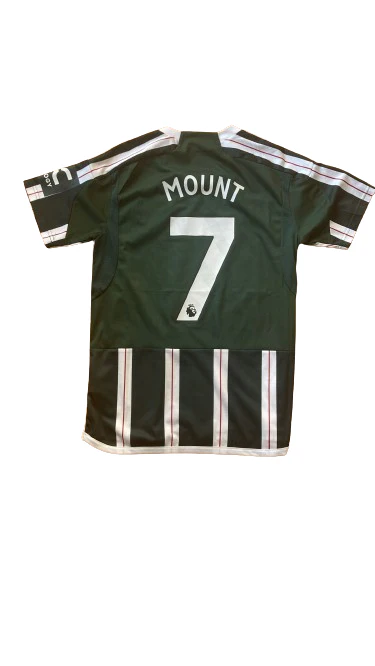 Camiseta de la segunda equipación del Manchester United de la temporada 2023-24 en talla M y perfecto estado con apeas uso con el dorsal 7 del icónico fichaje Mason Mount