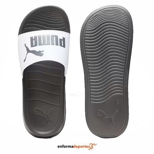 Chancla PUMA POPCAT 20, fabricada con tiras acolchada de piel sintética y suela de EVA inyectada para mayor suavidad y comodidad.