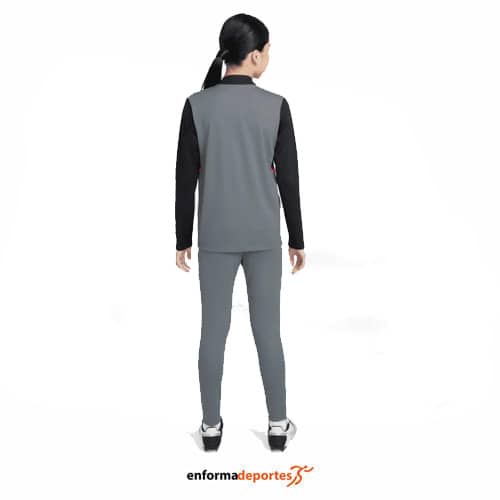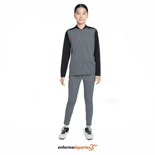 Chandal junior NIKE ACADEMY, confeccionado en tejido Knit 100% poliester, mejorado con nuestra tecnología Dri-FIT de capilarización del sudor, mantiene la frescura y la transpirabilidad, con tecnología Nike Dri-FIT aleja el sudor de la piel para mantener la transpirabilidad y la comodidad, con cintura elástica con cordón ajustable.