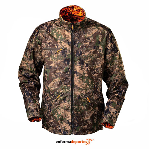 Chaqueta hombre CHIRUCA AXE 08, confeccionada en tejido 100% poliéster con acabado silencioso y membrana intermedia, con cremallera con cierre frontal, con 2 Bolsillos bajos delanteros, amplios con cierre de cremallera y conexión con los bolsillos reversible. 1 Bolsillo en el pecho con cierre de cremallera y conexión con el bolsillo reversible, puños con ajuste elástico en la zona interior de la manga, con cintura con preforma en la espalda y ajuste elástico en los laterales. Cortavientos.