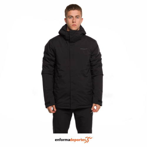 Chaqueta hombre TRANGO BALERNA TERMIC, confeccionada en tejido con Inner Plus 2L y relleno Fiberlite (130 g) con capucha desmontable y ceñidor facial, con costuras selladas, membrana impermeable y transpirable, con ceñidor en bajo, aislante térmico de fibra hueca, bolsillo pectoral, ventrales e interior con cremallera. Columna de agua 10000mm, térmica y confortable, repelencia al agua sin PFC.